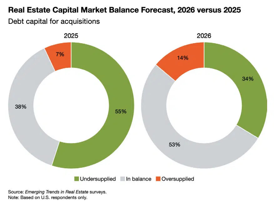 The capital environment heading into 2026 is shaped by one defining theme: uncertainty, especially around interest rates and the cost of debt. Liquidity has improved from the immediate post repricing period, but lenders remain selective, and many investors expect tight credit conditions to persist for both acquisitions and refinancing.