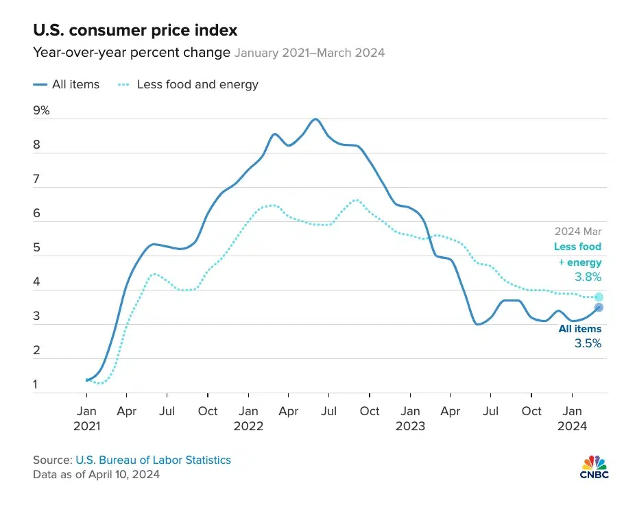 Last week, the US Department of Labor released a report showing that the CPI in March was higher than expected, rising by 3.5% year-on-year, marking an acceleration in inflation, with housing and energy being the main factors, and housing costs rising by 5.7% year-on-year. Following the report’s release, the expected interest rate adjustment has been postponed from March to September.
