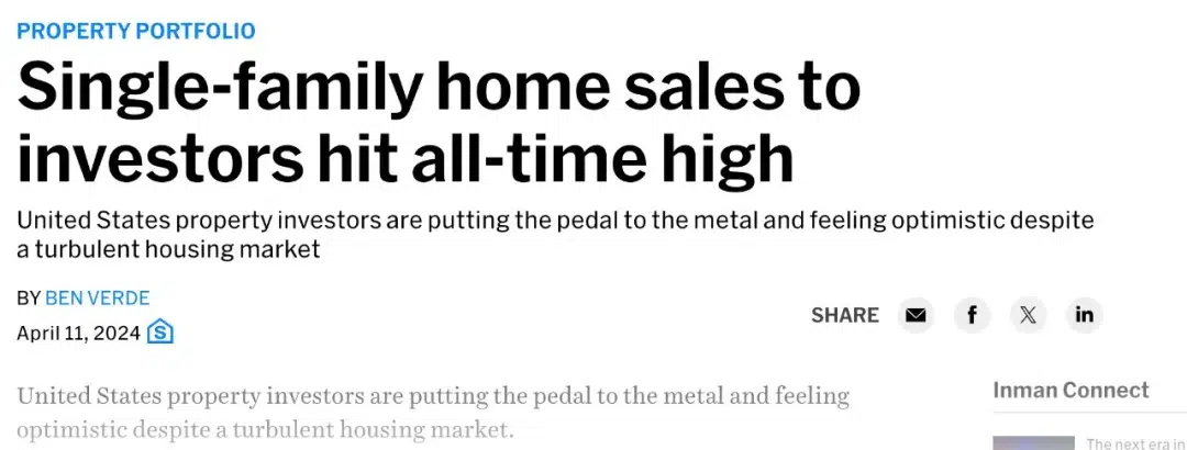 Investors’ shares in single-family homes purchased in Q4 of last year were 28%, 27.3%, and 28.7% respectively. The report speculates that by 2024, investors’ share of purchases may exceed 30%, contrasting with the volume of owner-occupied home purchases. Due to the impact of high interest rates, the number of homes purchased per month for owner-occupation is about 100,000 less than before 2022 (while also releasing demand for rental properties). This demonstrates investors’ financial resilience in the face of high interest rates and low inventory.
