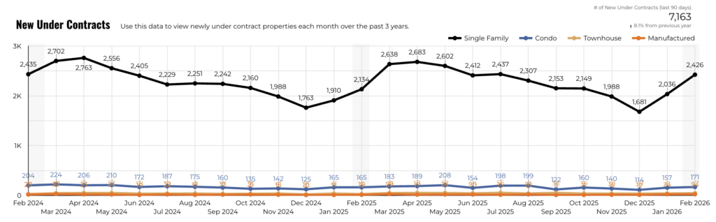 A key data point this month was pending sales, which jumped 13.9% year-over-year to 2,690 transactions. The sharp increase shows that buyers are moving early, a sign of growing market confidence heading into spring.