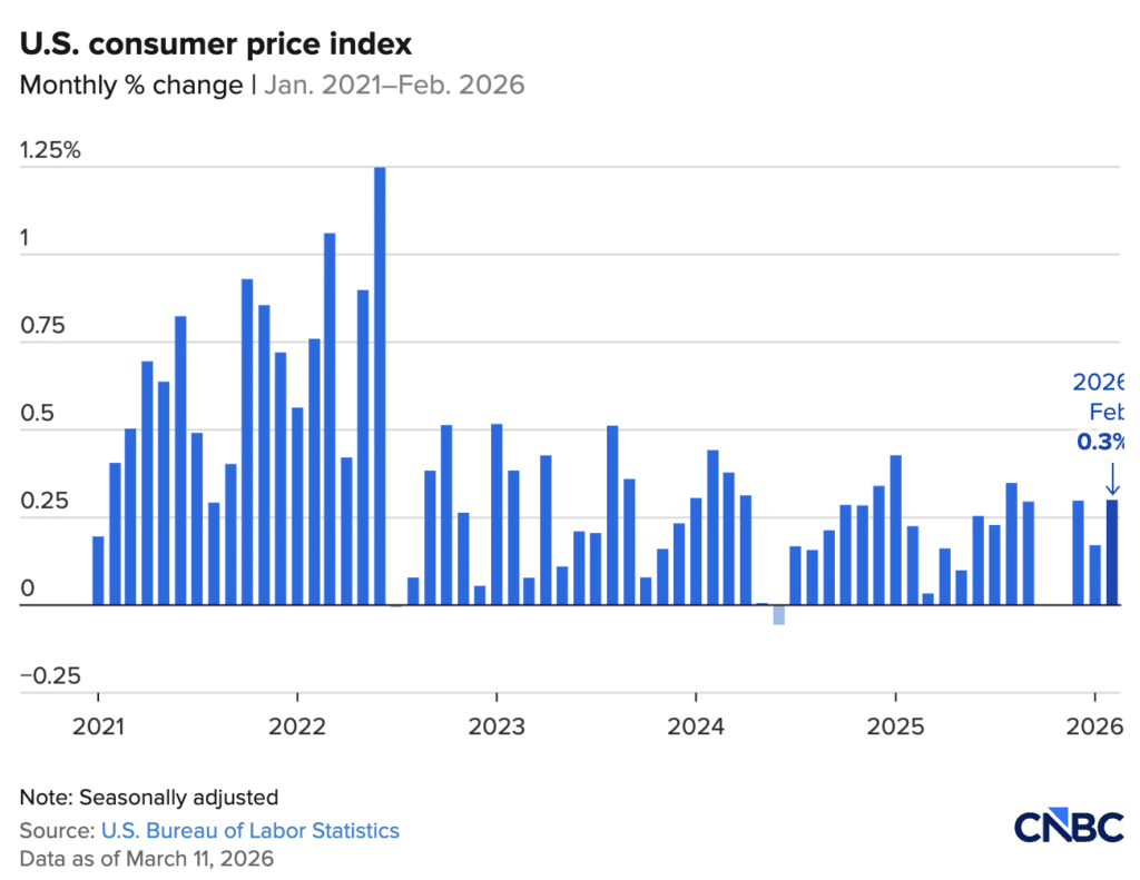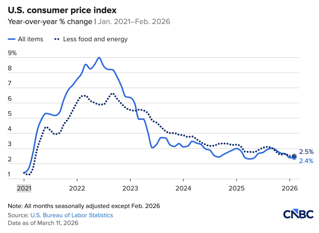 According to the latest release, the U.S. Consumer Price Index (CPI) rose 2.4% year-over-year in February 2026, unchanged from January and in line with expectations. While inflation remains slightly above the long-term target, the overall downward trajectory continues.