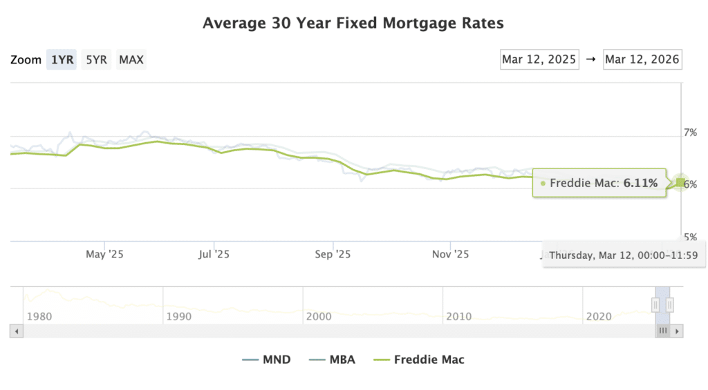 From a policy standpoint, the Federal Reserve maintains a conservative short-term stance even though its long-term path toward rate cuts hasn’t changed. Amid recent geopolitical tensions, 30-year fixed mortgage rates rebounded slightly to around 6.11%.